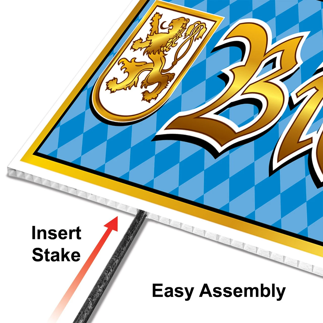 Beer Garden all weather party yard sign. Includes 3 metal stakes for easy install and a tri-fold design for simple storage. The all weather design allows you to display your party sign rain or shine.